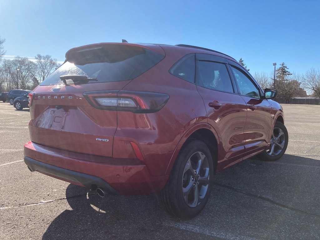 Recent Arrival! 2024 Ford Escape ST-Line Rapid Red Metallic Tinted Clearcoat AWD, Cold Weather Package, Equipment Group 300A, Ford Co-Pilot360 Assist+, Heated Steering Wheel, Power Liftgate, Rear-View Camera, Remote Starter System, SYNC 4 w/Enhanced Voice Recognition, Tech Pack #1.