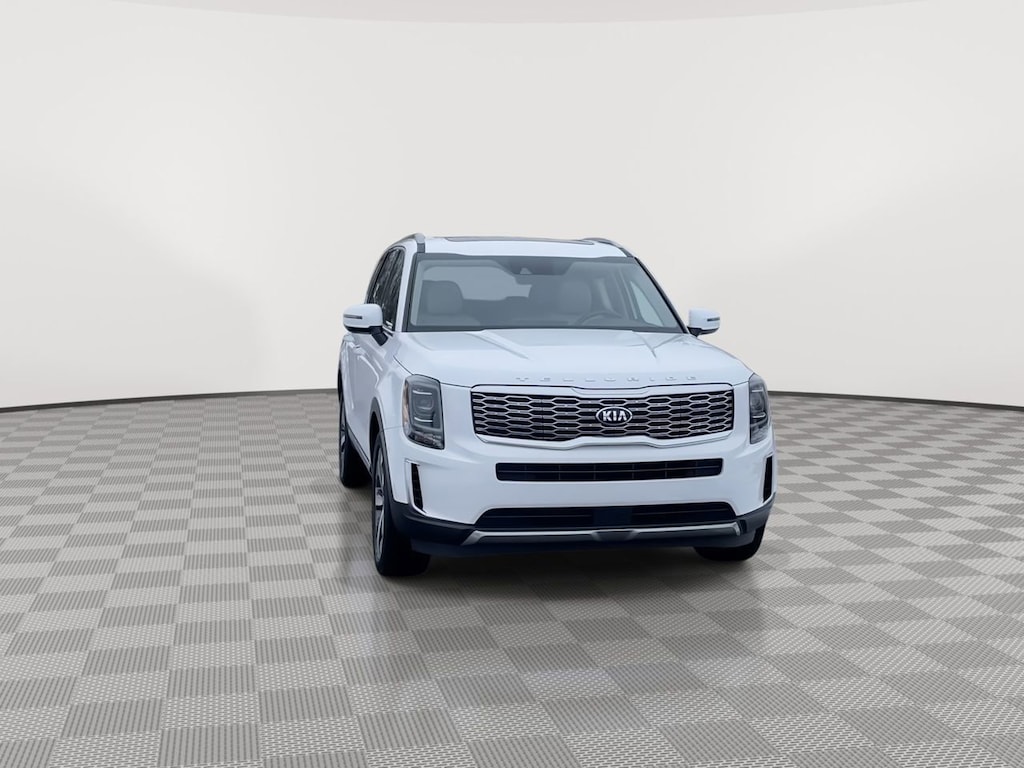 Recent Arrival! Clean CARFAX. 2021 Kia Telluride S Glacial White Pearl Apple CarPlay & Android Auto, Electronic Stability Control, Front Bucket Seats, Fully automatic headlights, Heated Front Bucket Seats, Leather steering wheel, Power driver seat, Power moonroof, Radio: AM/FM/SIRIUS Display Audio, Rear air conditioning, Rear anti-roll bar, Wheels: 7.5 x 20 Machined Finish Alloy.
